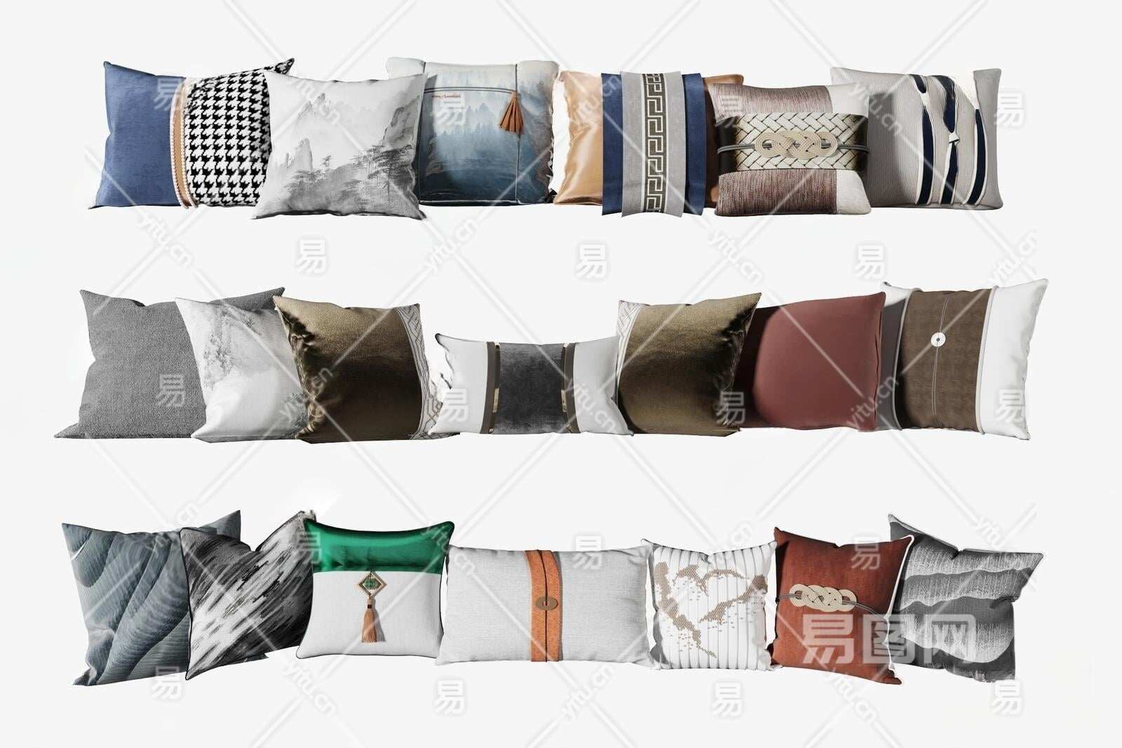 新中式抱枕3D模型下载