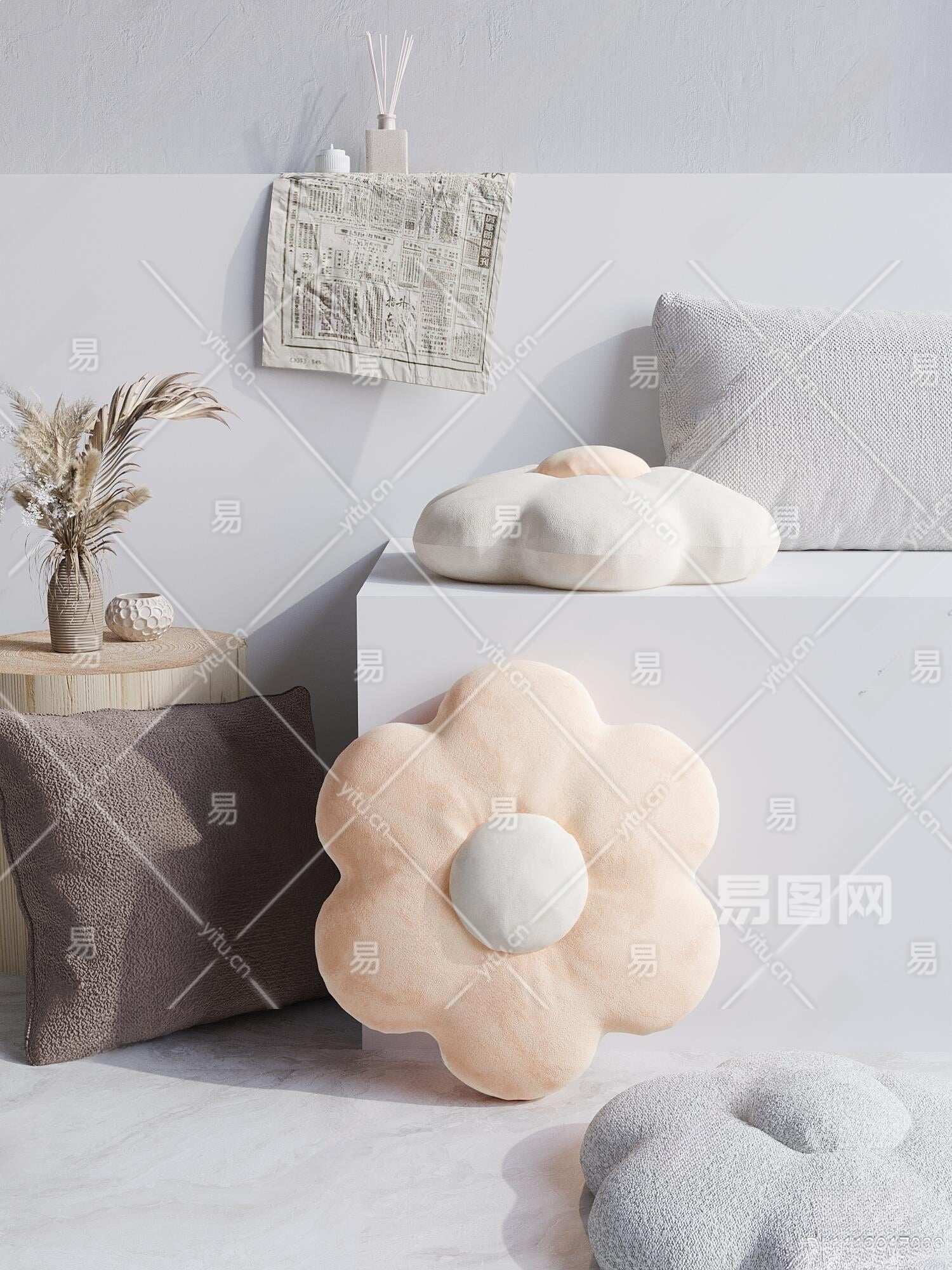 现代花瓣可爱抱枕3D模型下载