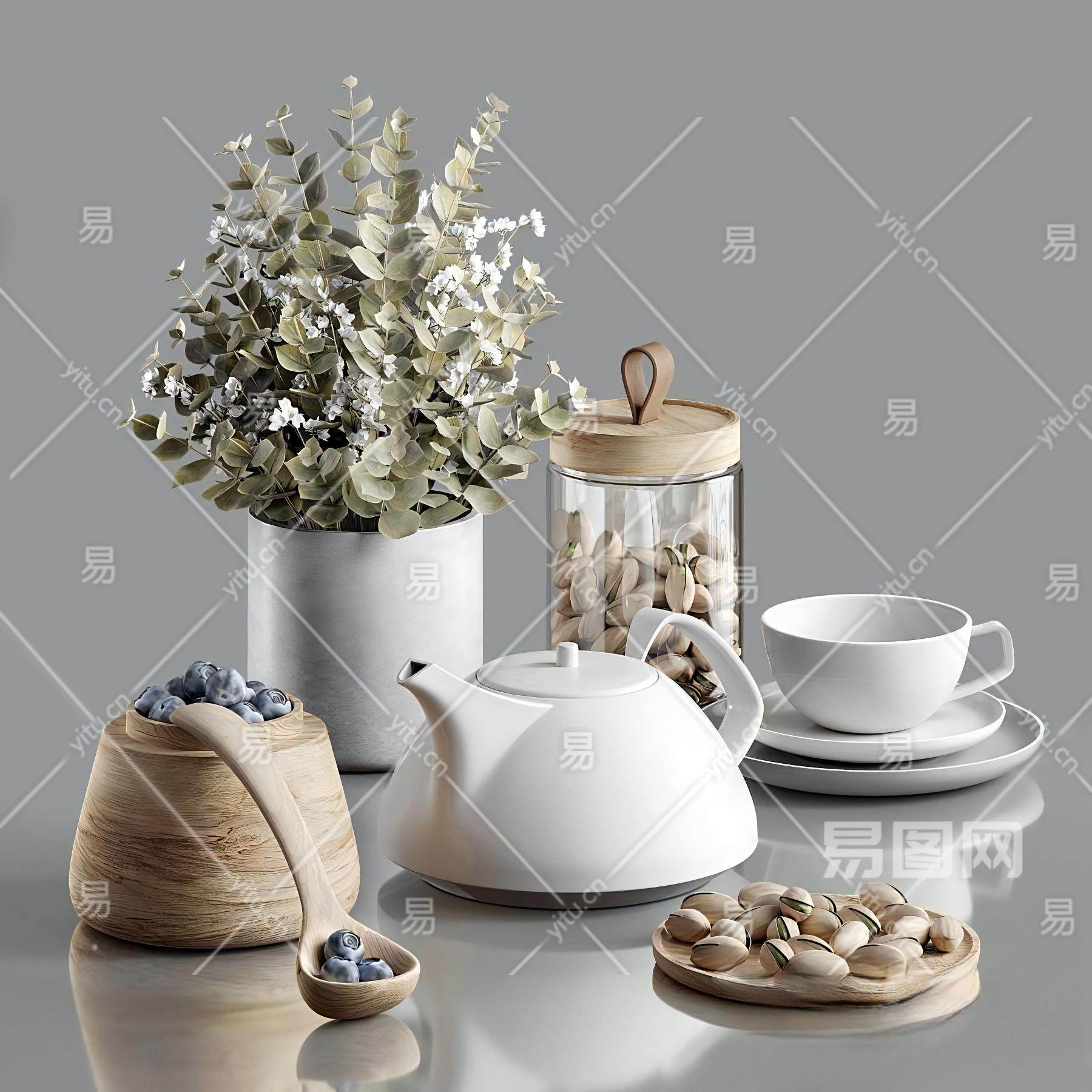 当前的位置:首页 > 3D模型 > 陈设饰品 > 摆件组合 > 现代花瓶茶壶蓝莓开心果