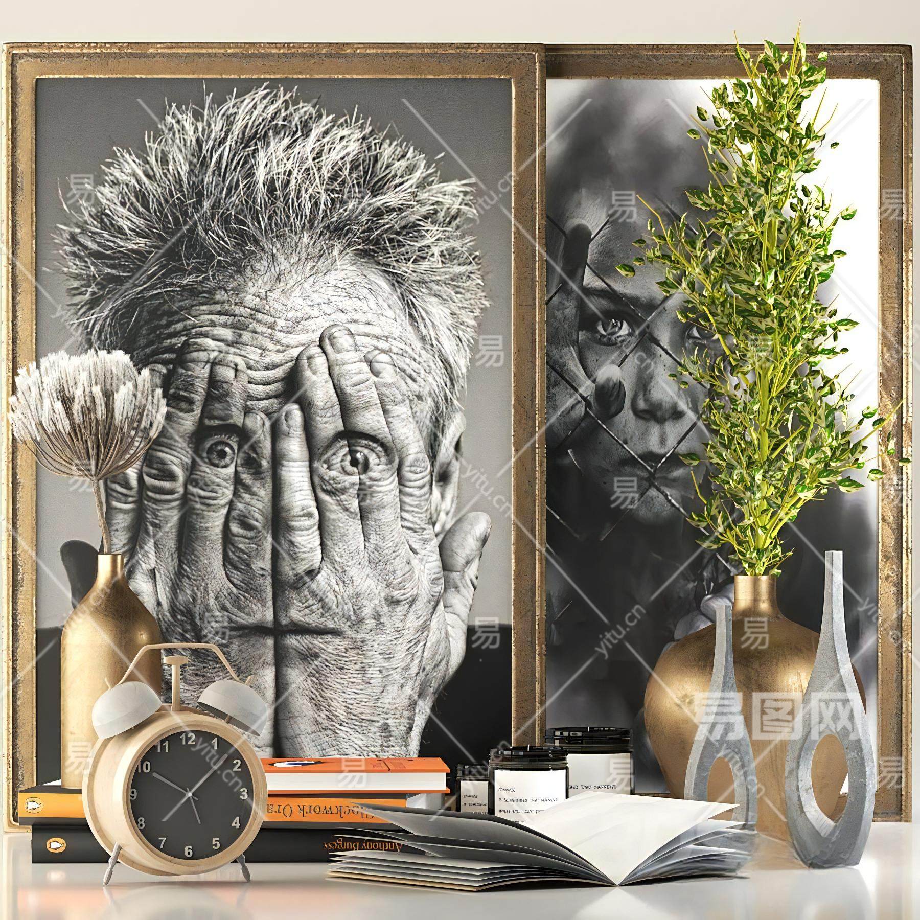 当前的位置:首页 > 3D模型 > 陈设饰品 > 摆件组合 > 现代绿植花瓶闹钟器皿摆件