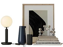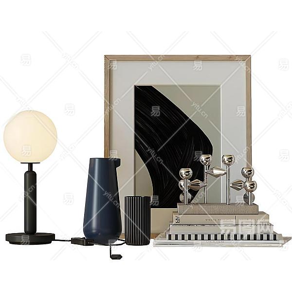 现代摆件组合 书籍书本 台灯 陈设饰品 装饰画