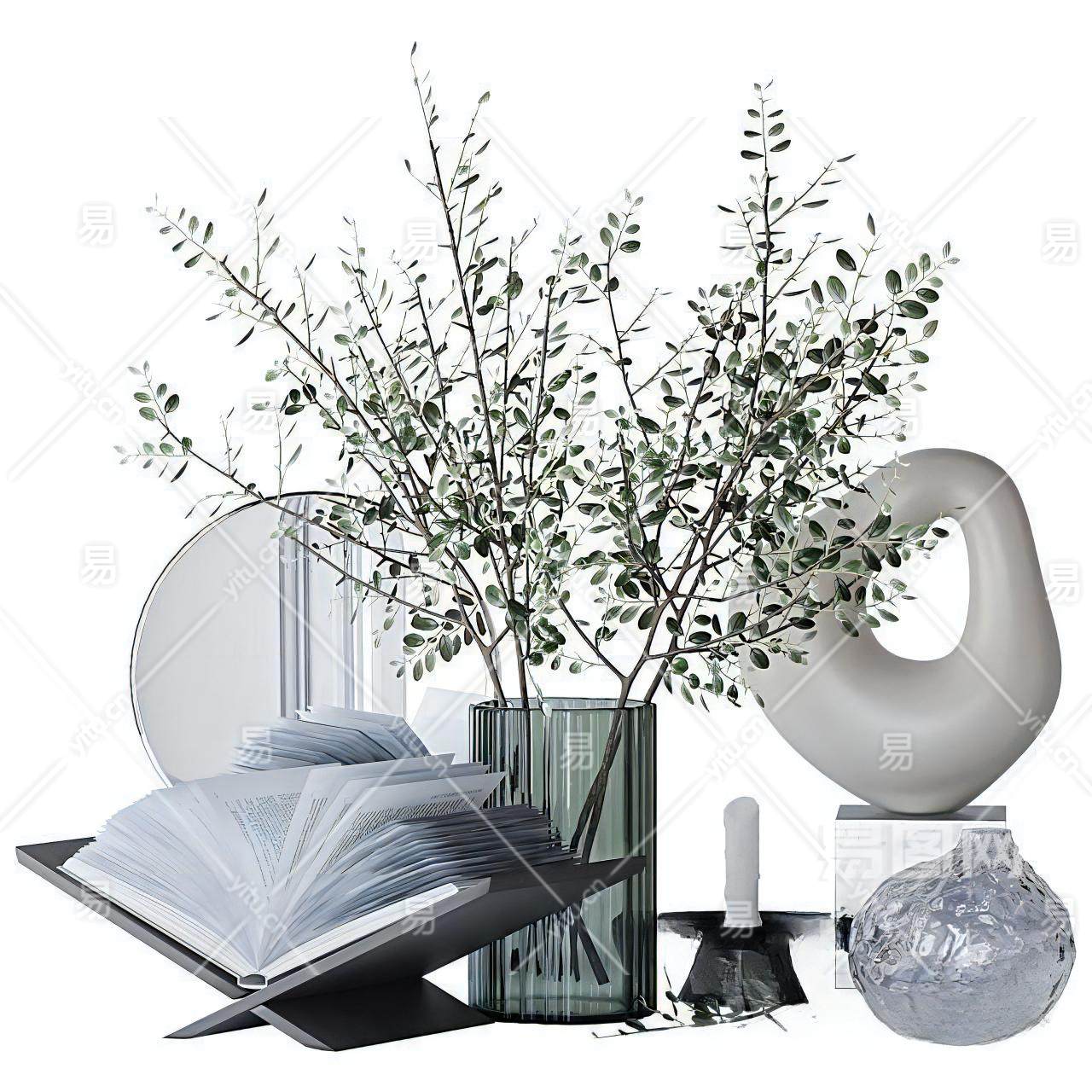 现代摆件组合 陈设品 花瓶 雕塑 菜谱书架