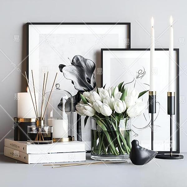 现代花卉 花瓶 蜡烛台 装饰画 摆件