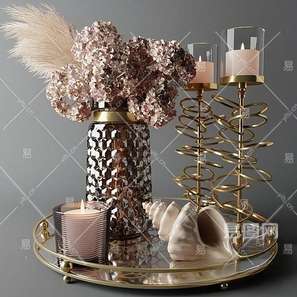 现代花瓶花艺 花卉 烛台 饰品摆件