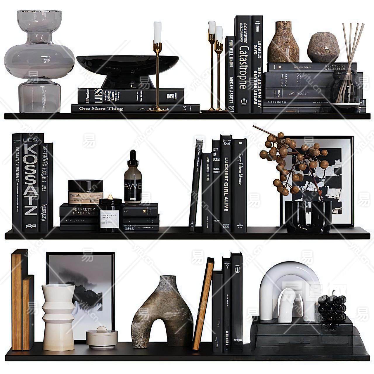 现代书籍 饰品摆件组合 书本 瓶罐 陈设品