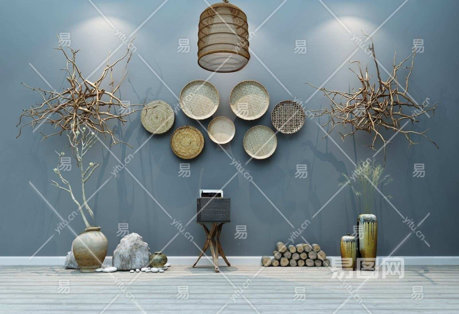 当前的位置:首页 > 3D模型 > 陈设饰品 > 摆件组合 > 新中式自然风农具装饰品墙饰干枝组合3D模型下载