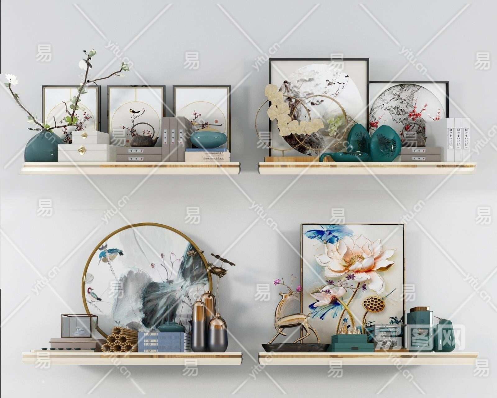 新中式摆件组合3D模型下载