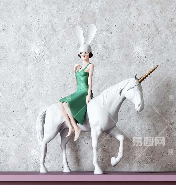 现代独角兽女孩装饰摆件3D模型下载