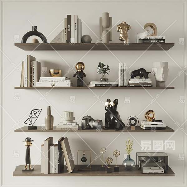 现代摆件组合3D模型下载