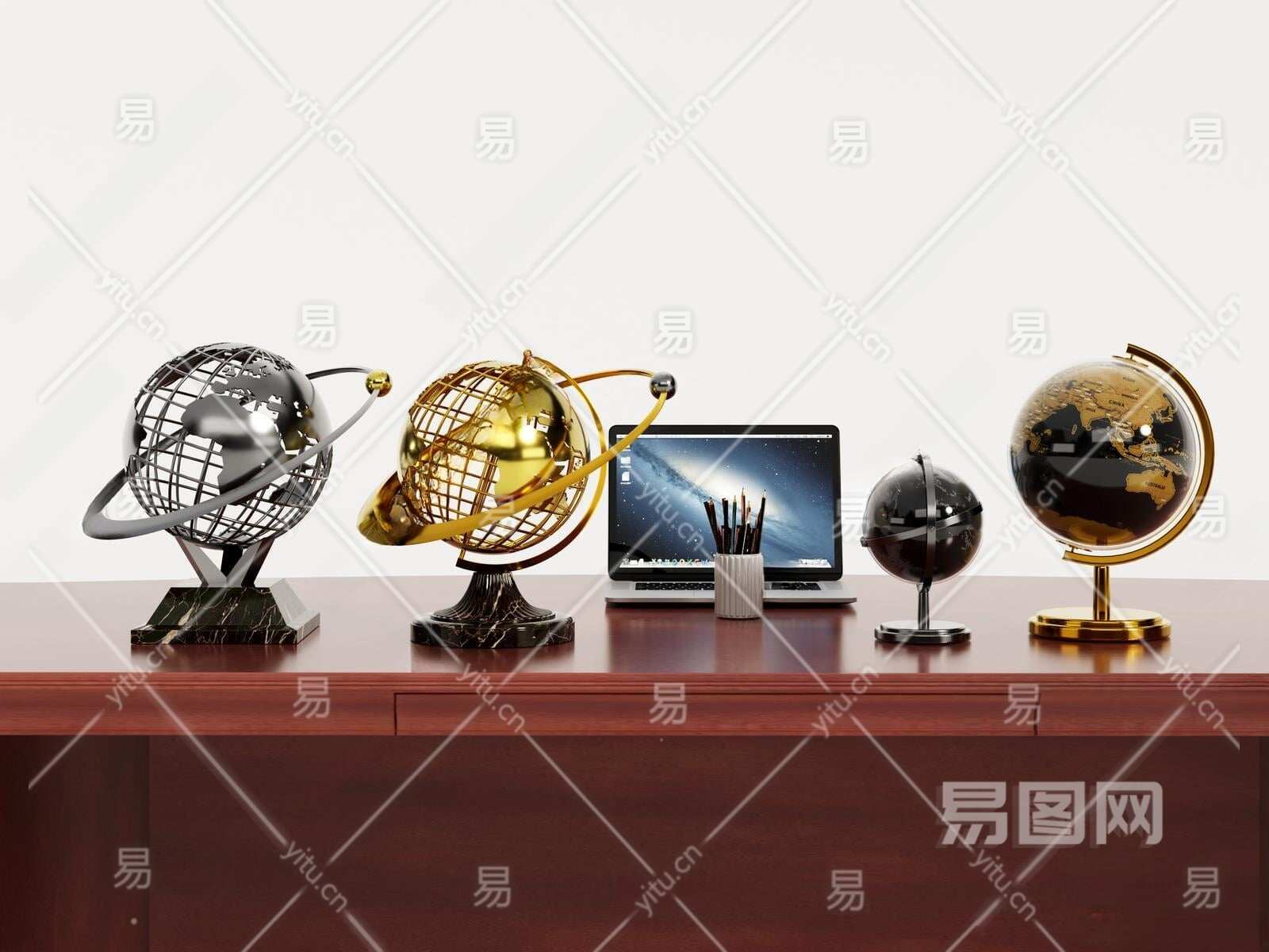 现代地球仪摆件组合3D模型下载