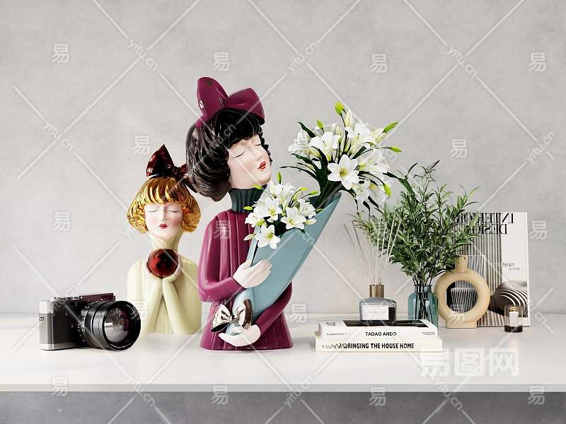 现代摆件组合3D模型下载