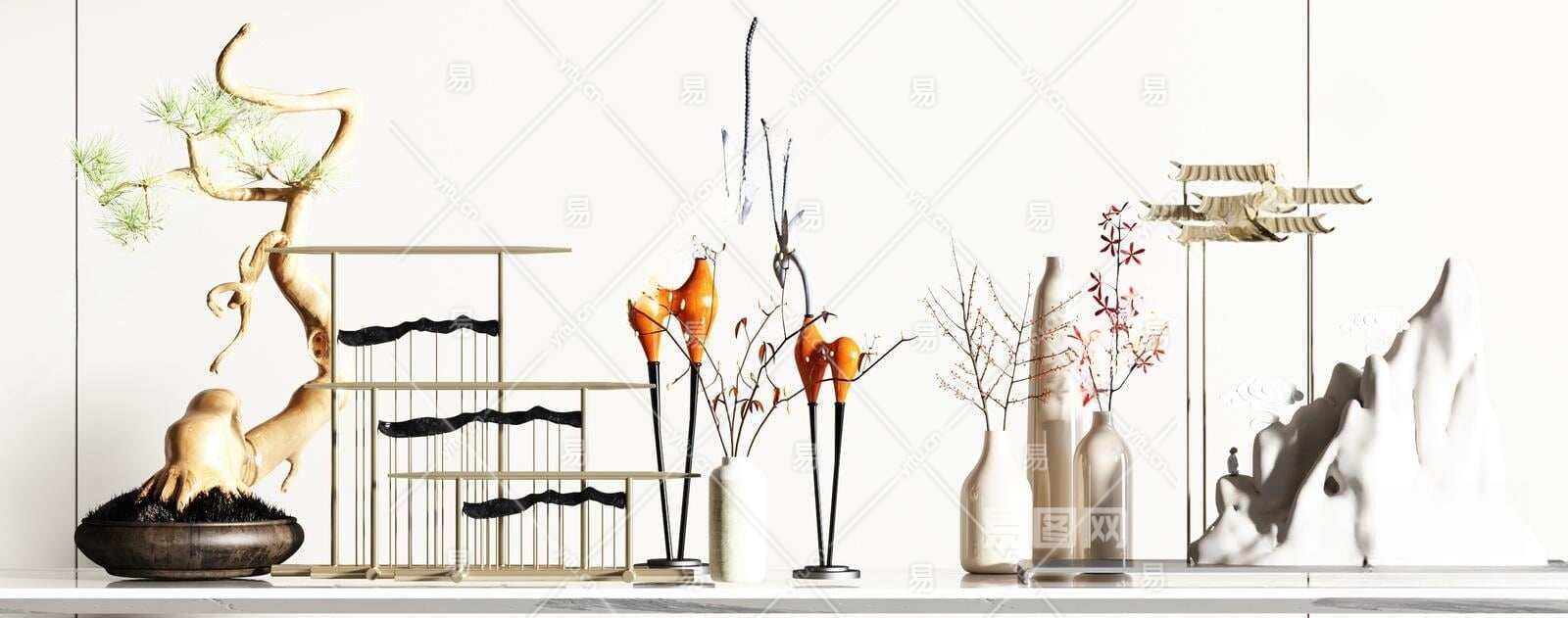 新中式摆件组合3D模型下载