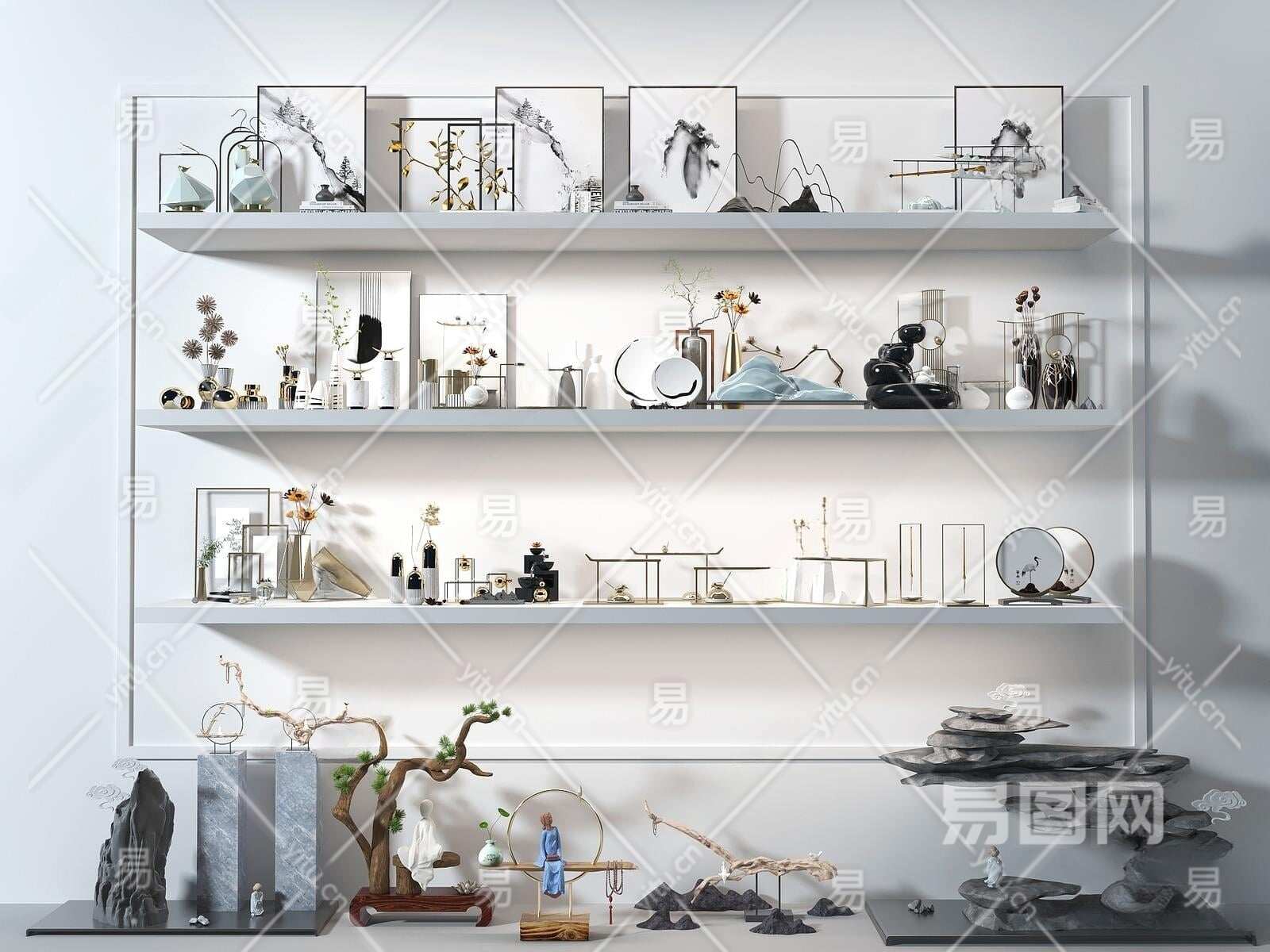 新中式摆件组合3D模型下载
