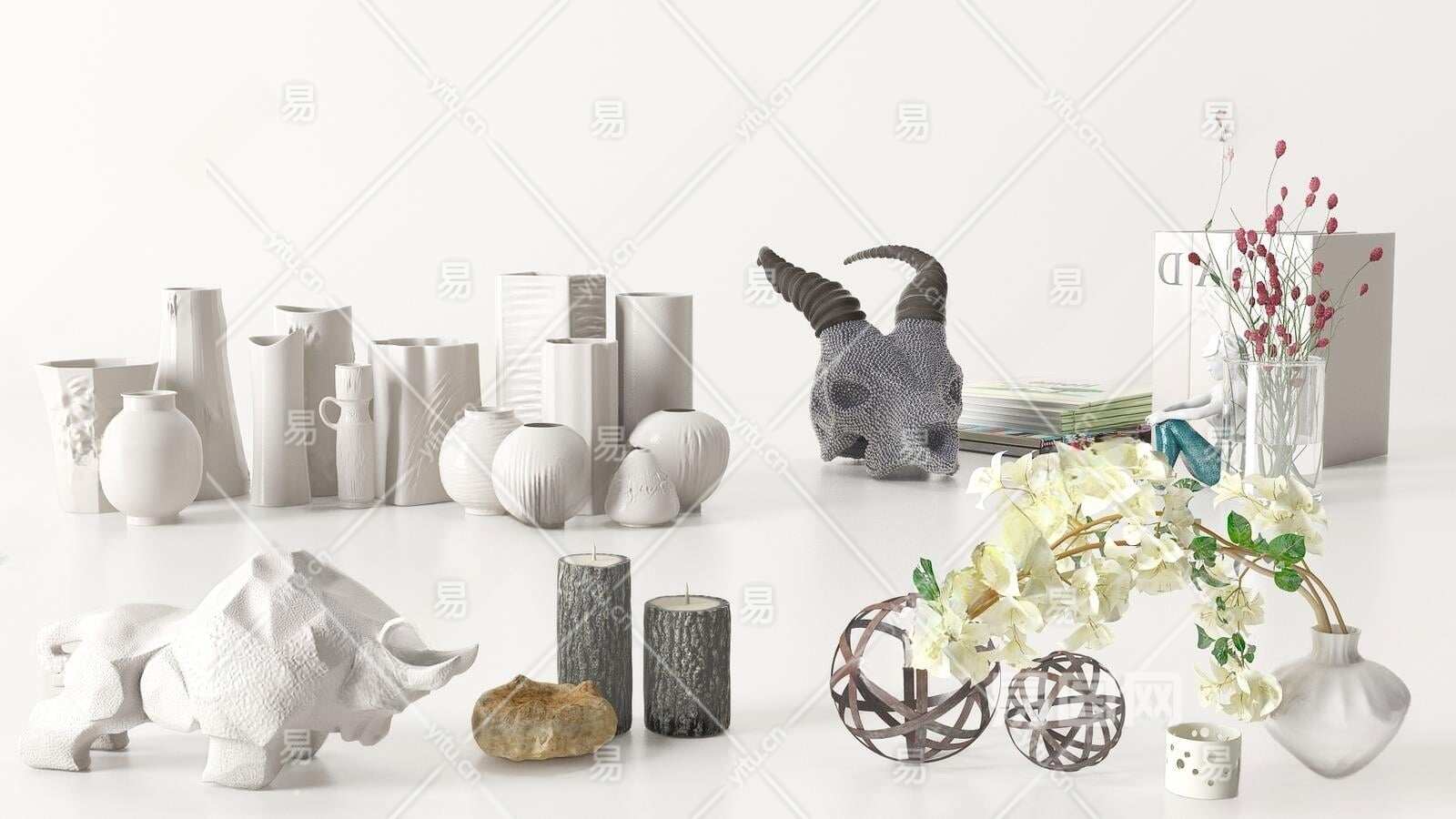现代摆件组合3D模型下载