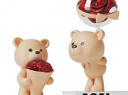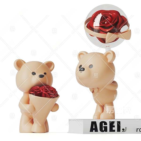 现代抱花小熊摆件3D模型下载
