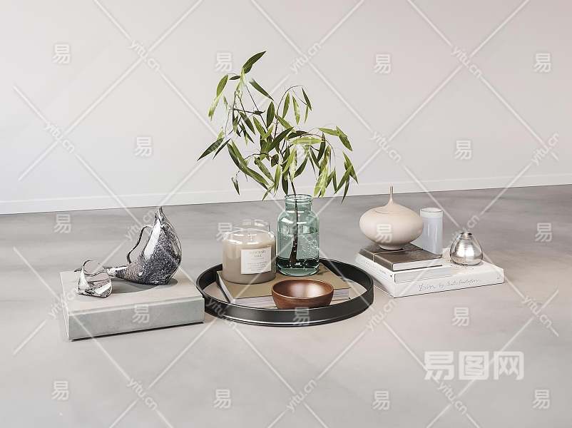 现代饰品摆件组合3D模型下载