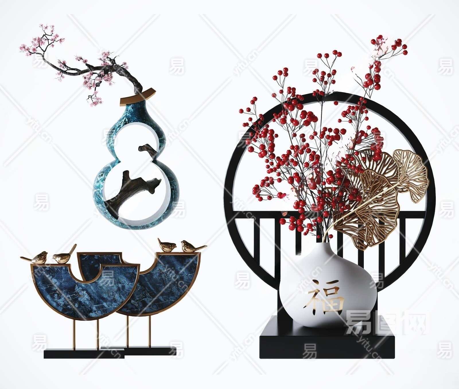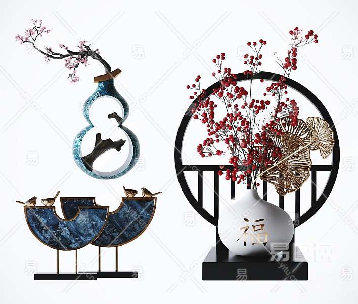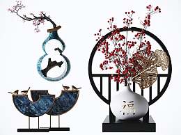 新中式装饰摆件组合3D模型下载