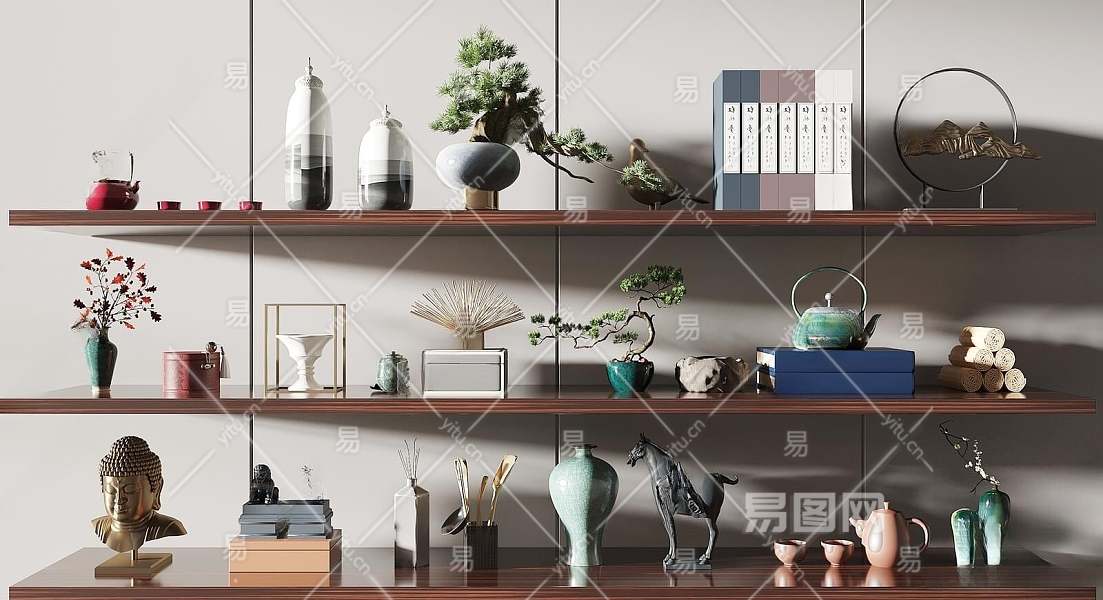 新中式摆件组合3D模型下载