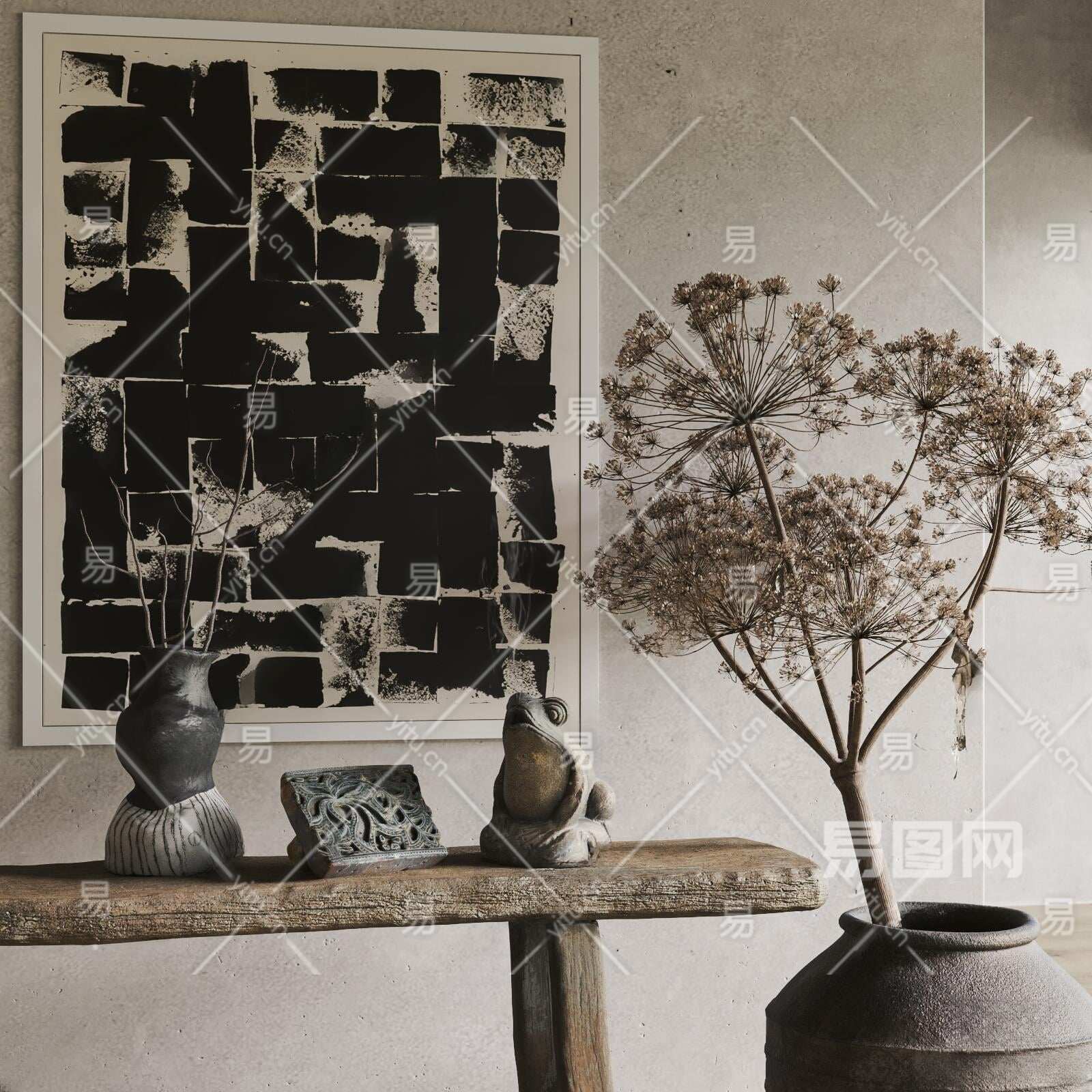 侘寂风饰品摆件组合3D模型下载