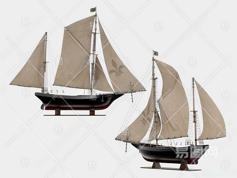 美式复古帆船摆件3D模型下载