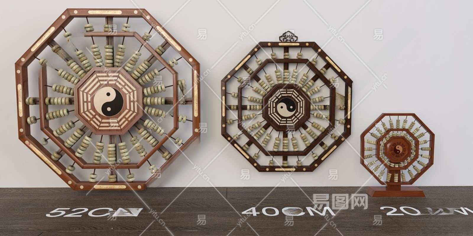 中式八卦玉石算盘摆件3D模型下载
