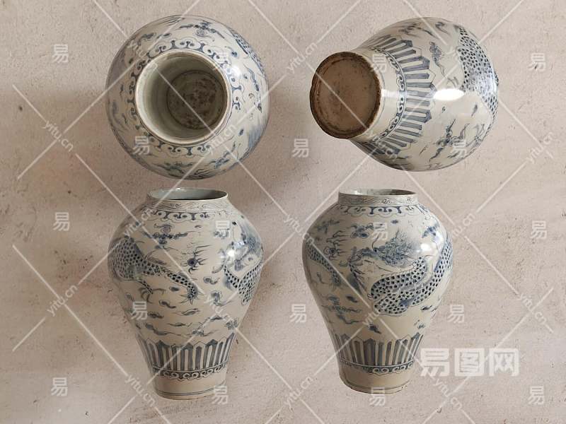 中式青花龙纹瓶3D模型下载