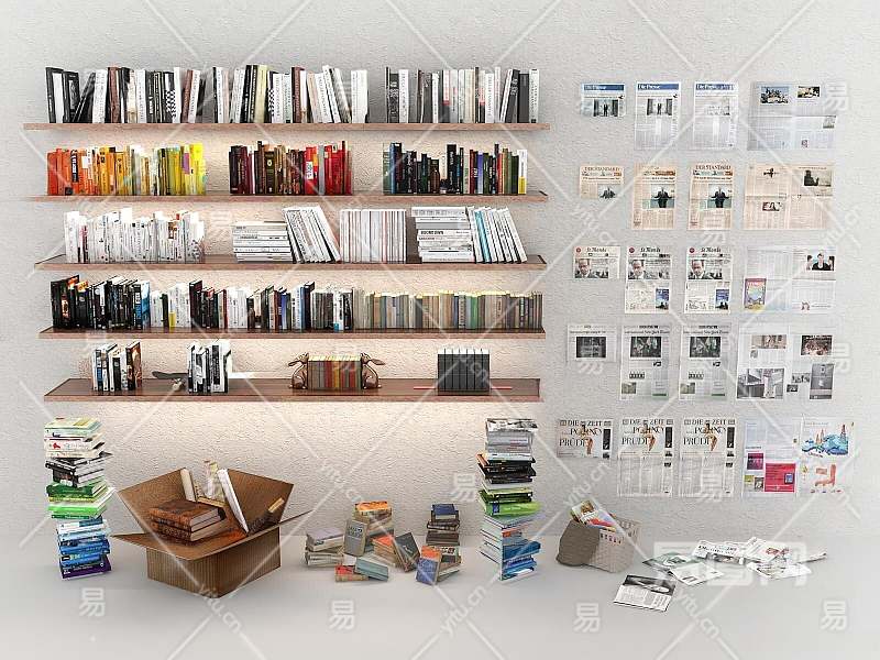 现代书籍报纸组合3D模型下载