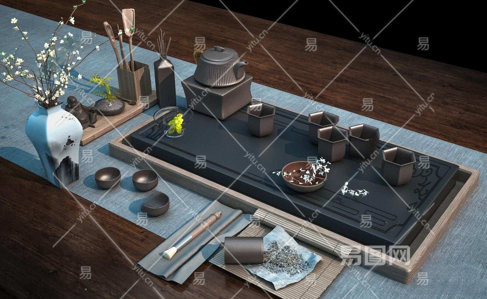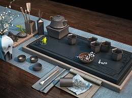 新中式茶具3D模型下载
