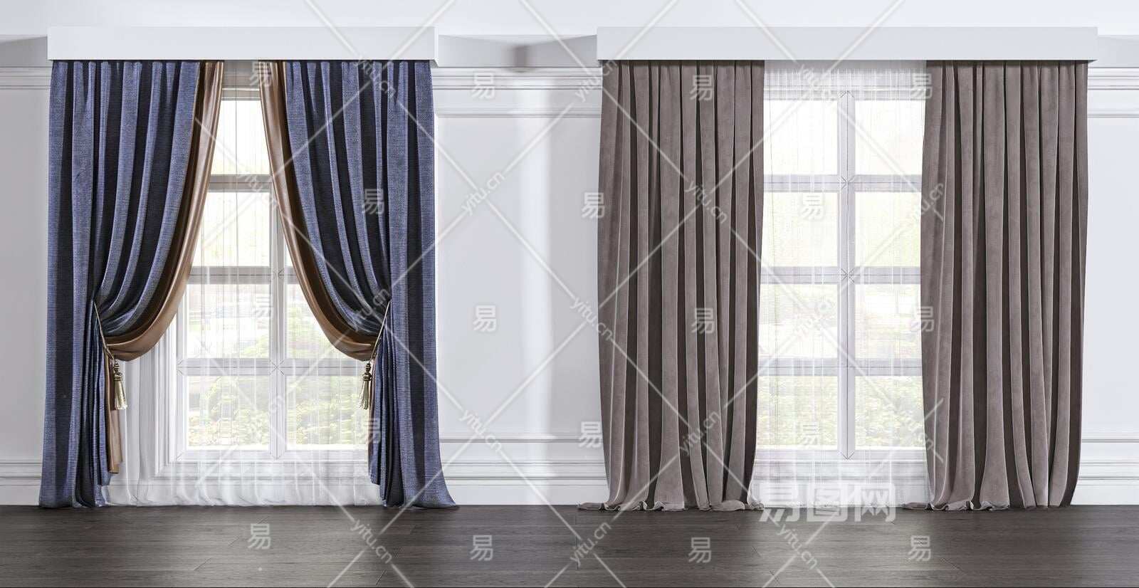 现代拼色窗帘3D模型下载