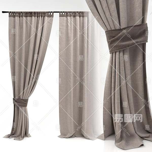 新中式棉布质感窗帘3D模型下载