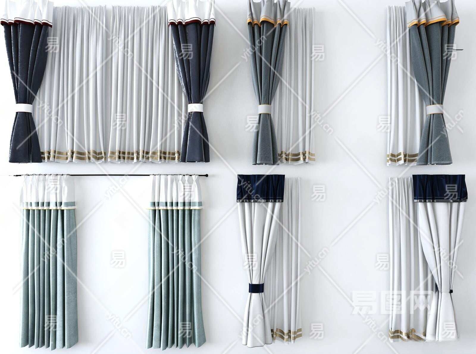 新中式窗帘3D模型下载
