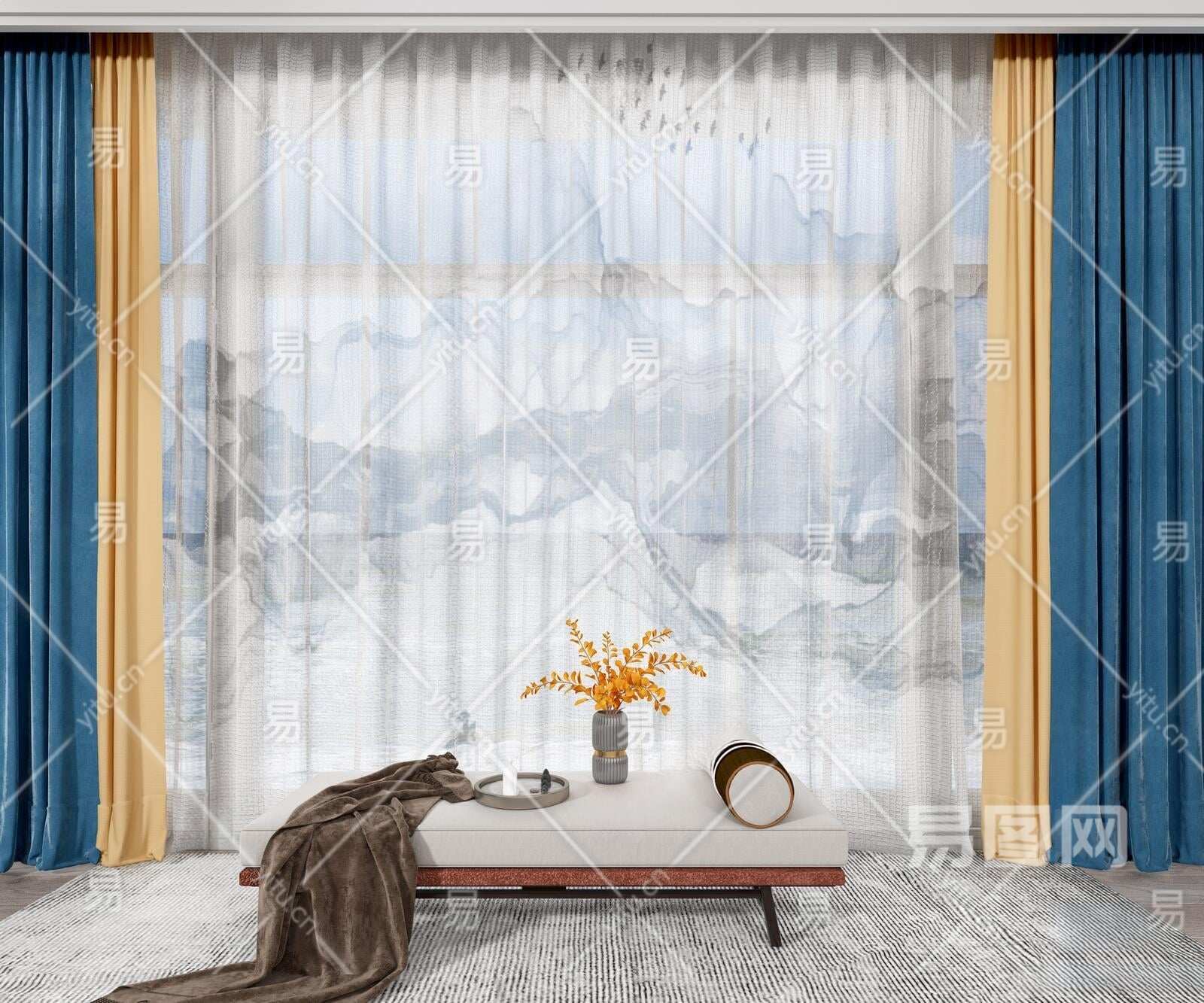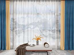 新中式窗帘3D模型下载