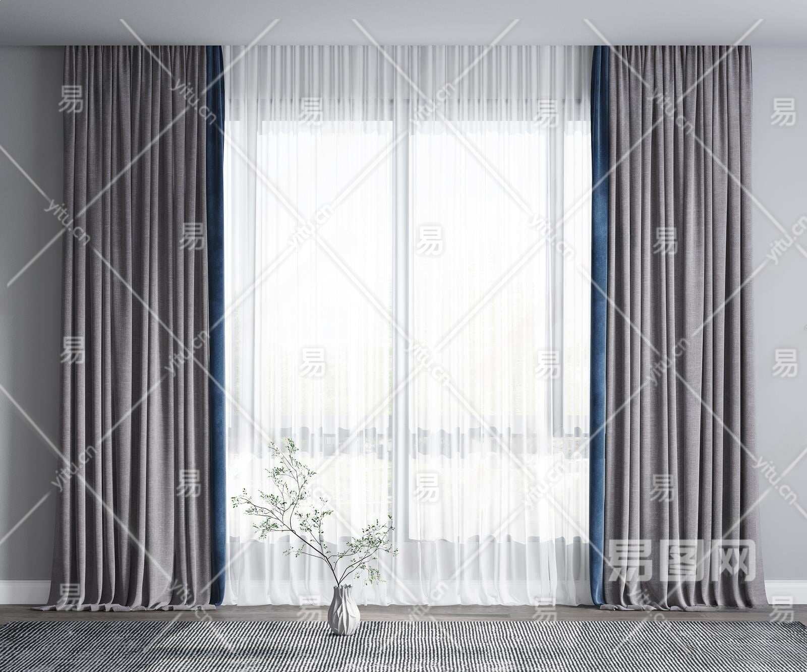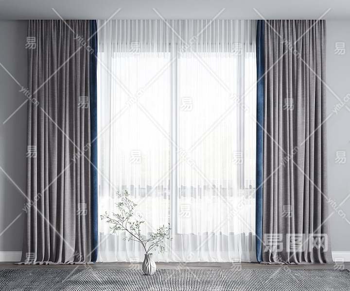 现代布艺窗帘3D模型下载