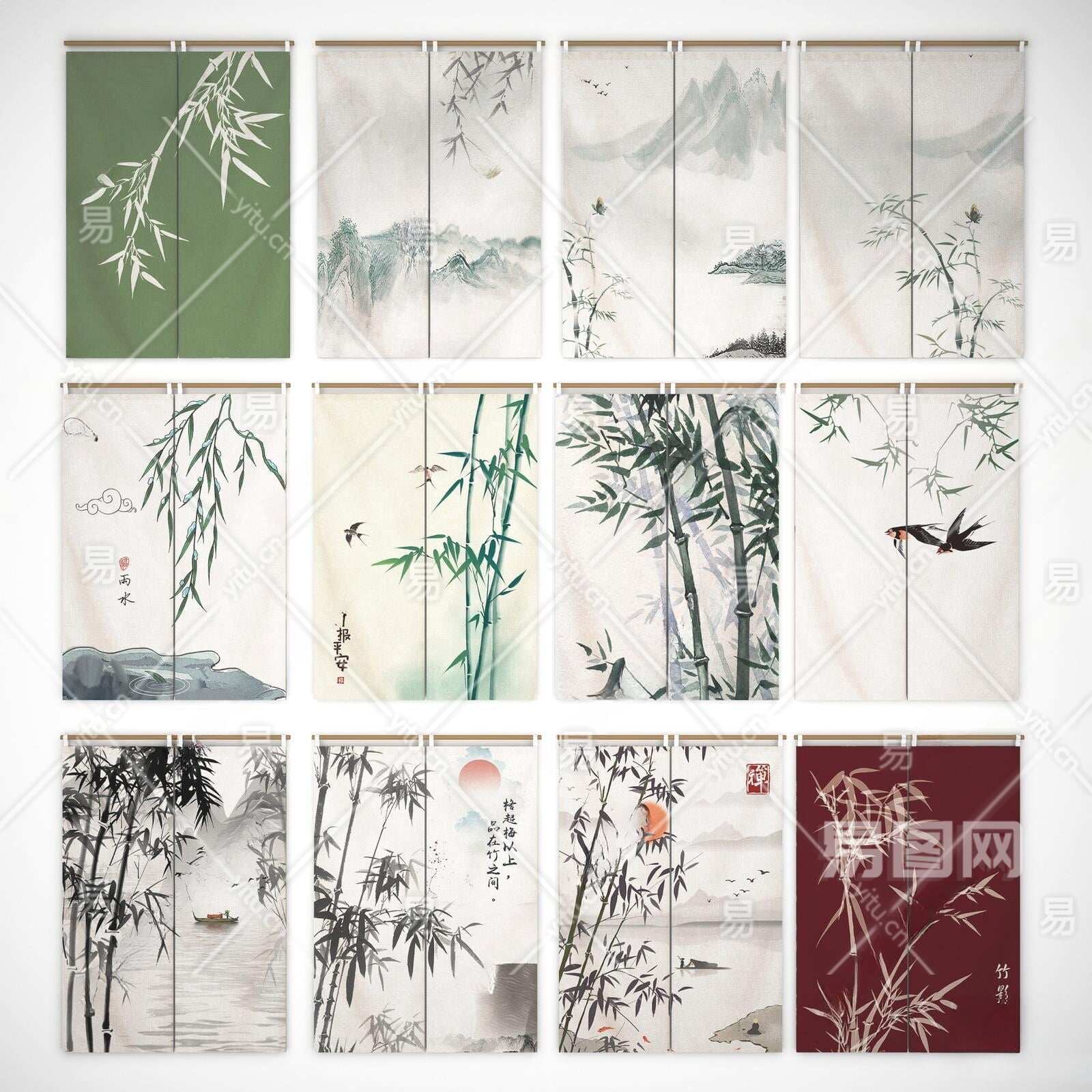 新中式门帘3D模型下载