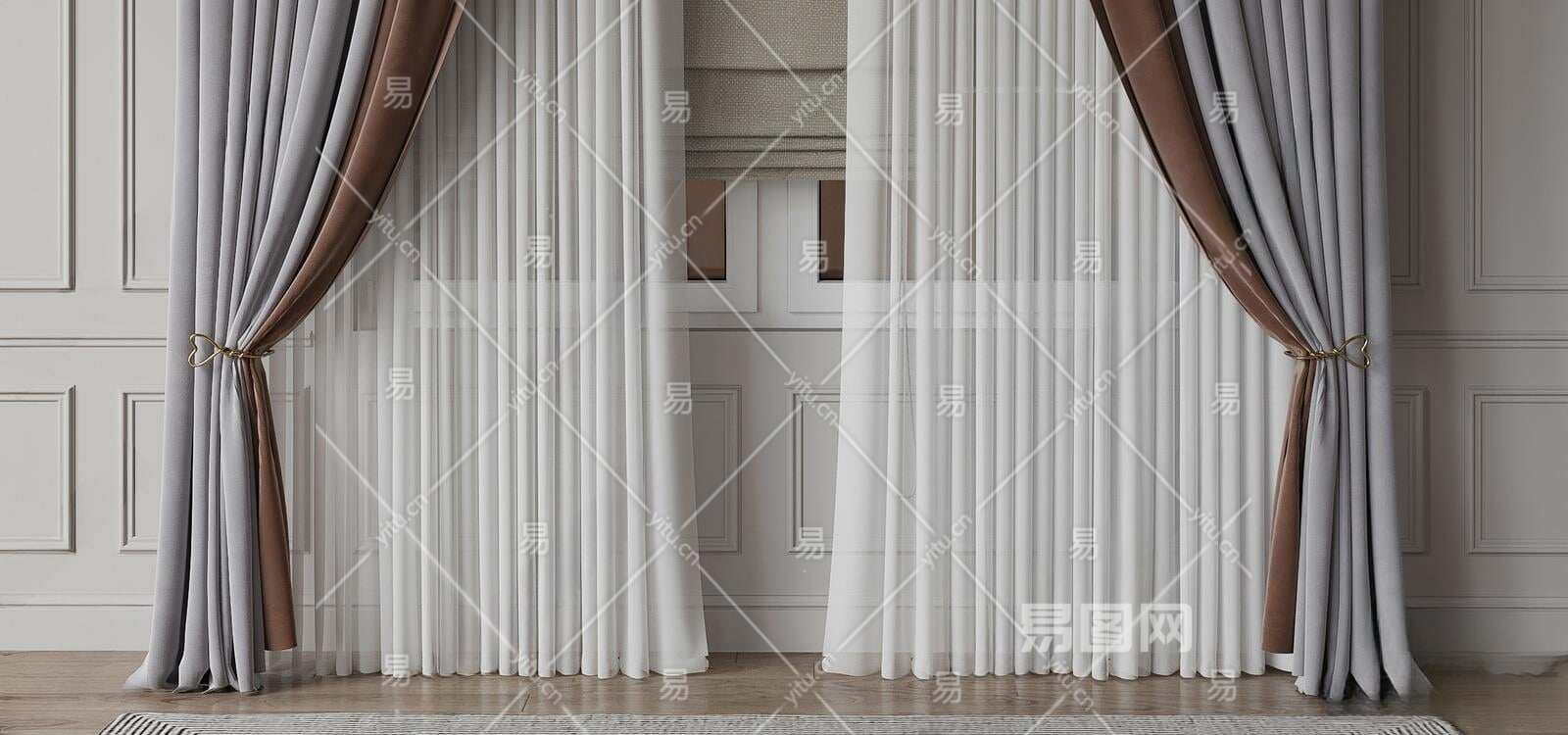 新中式窗帘3D模型下载