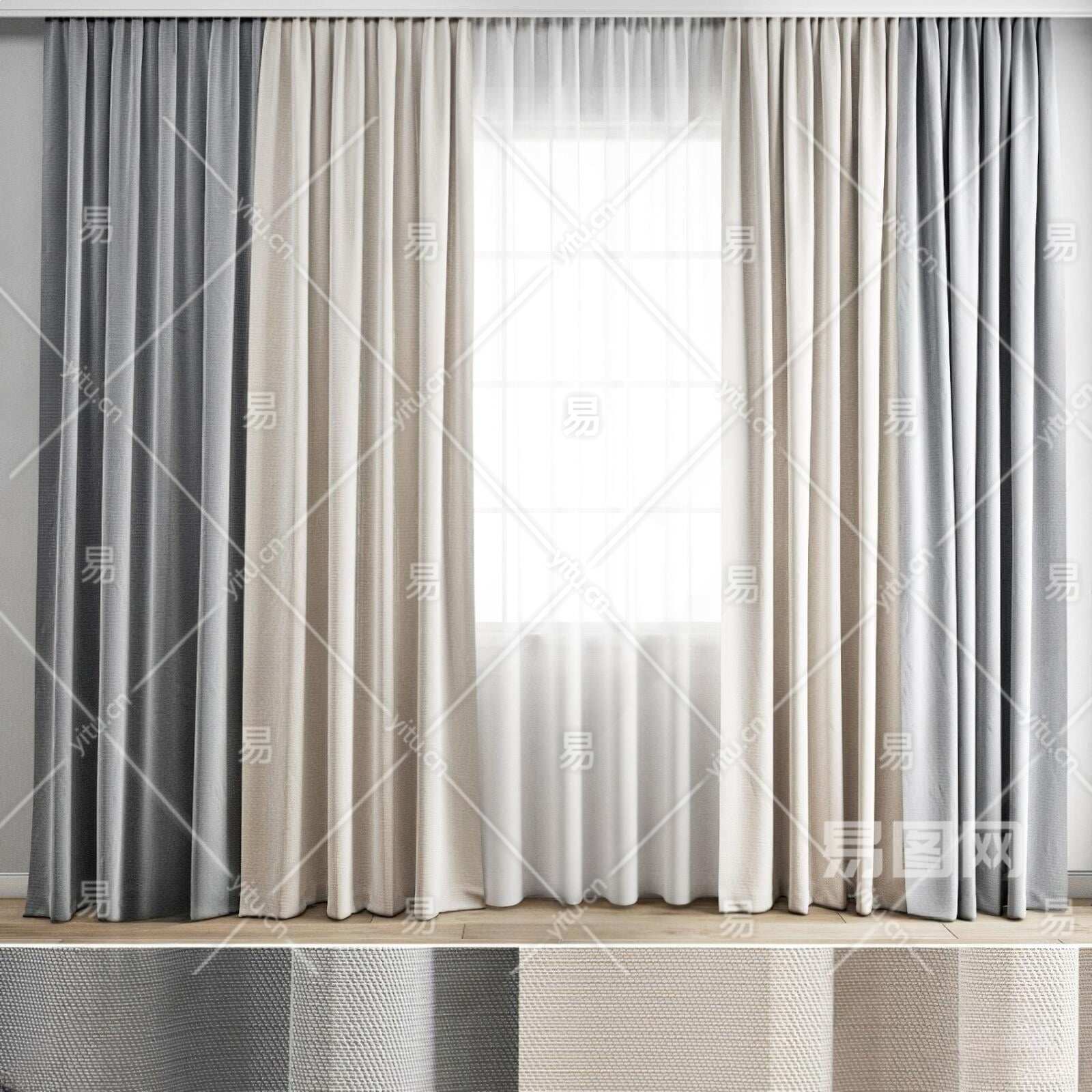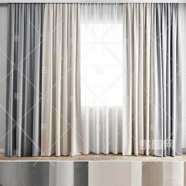 现代窗帘3D模型下载