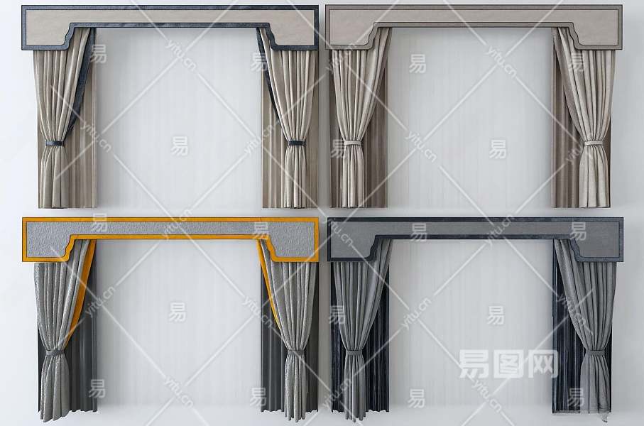 新中式窗帘3D模型下载