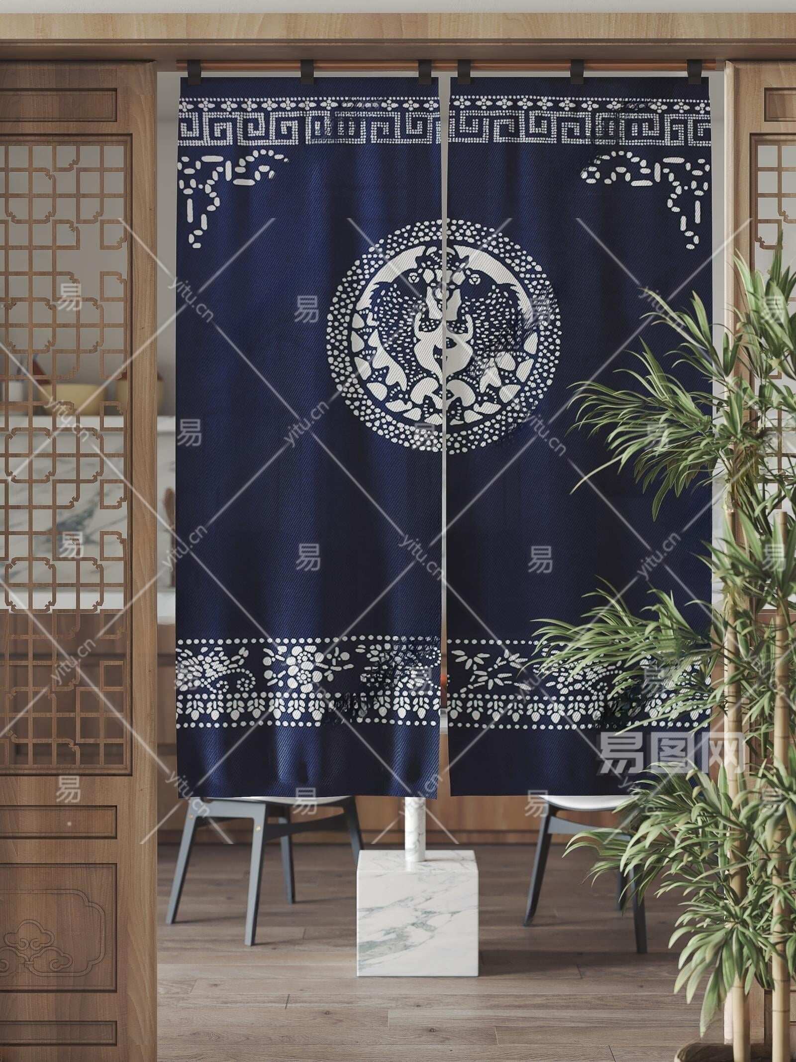 新中式门帘3D模型下载