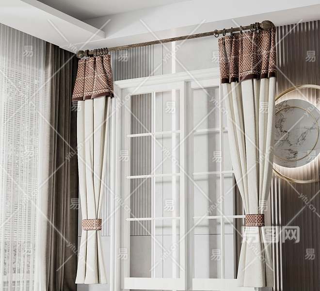 简欧布艺窗帘3D模型下载