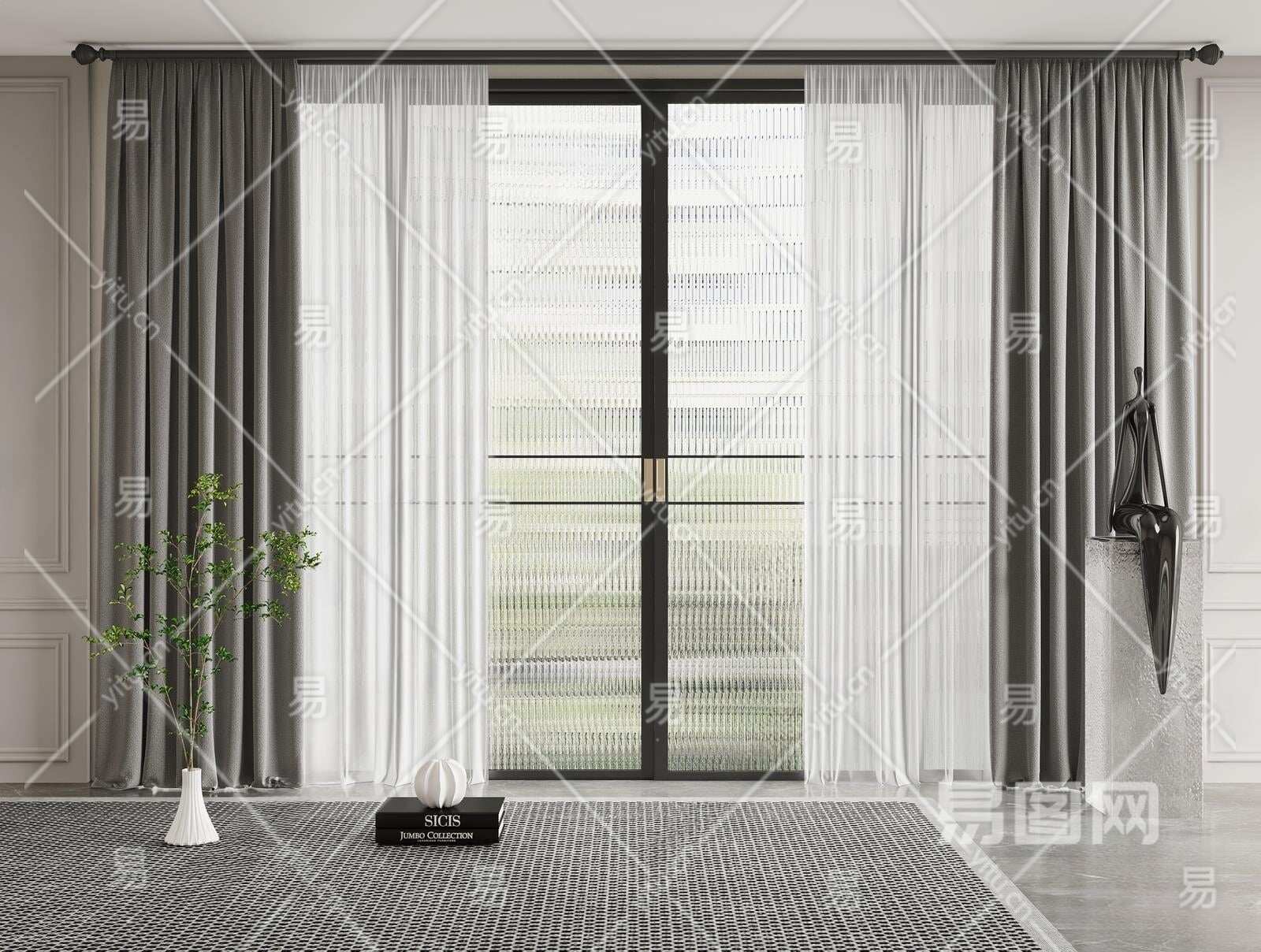 现代窗帘3D模型下载