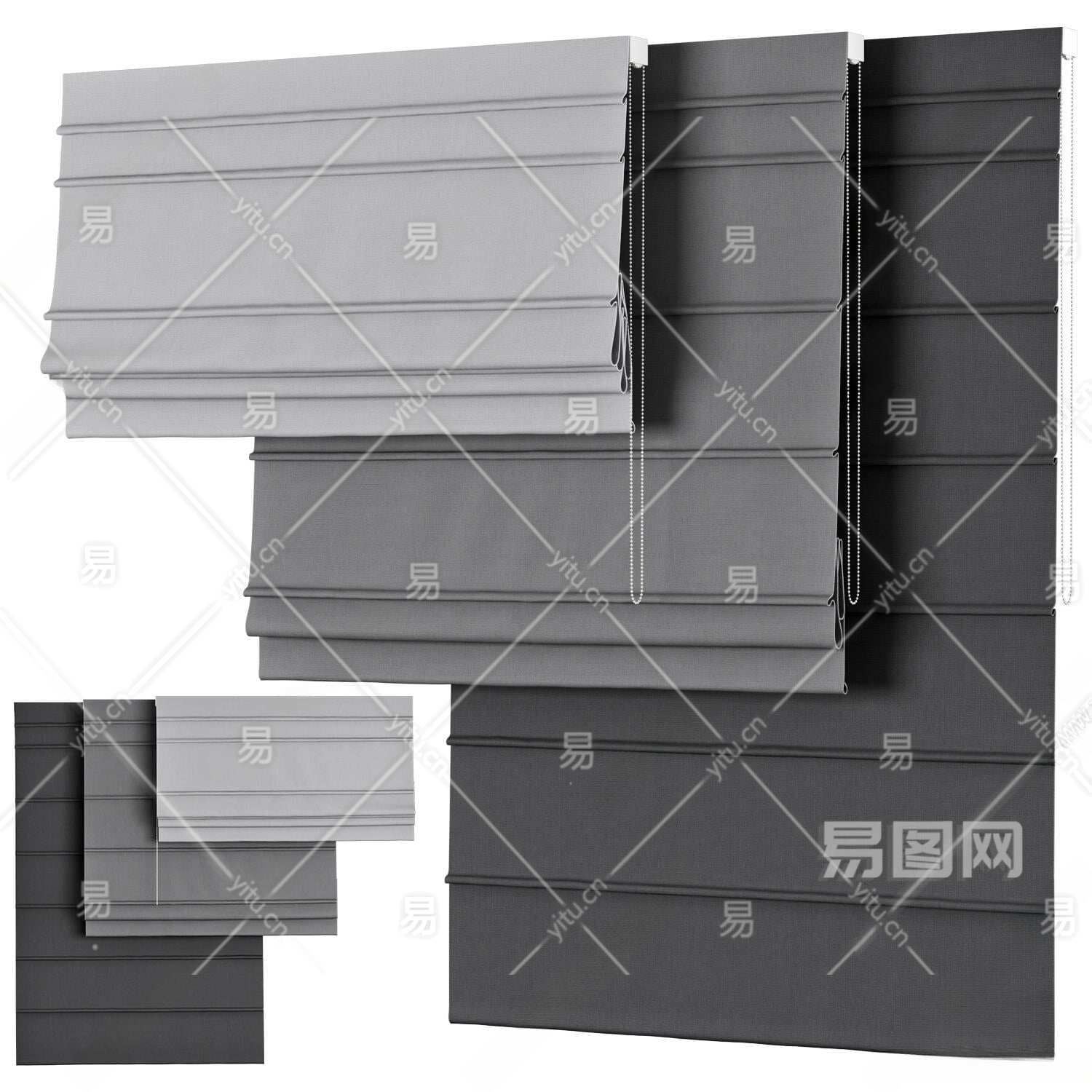 现代窗帘3D模型下载