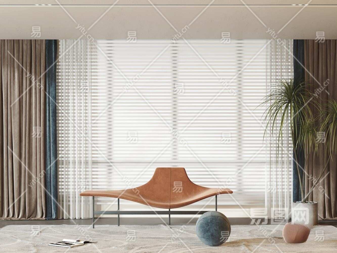现代窗帘3D模型下载