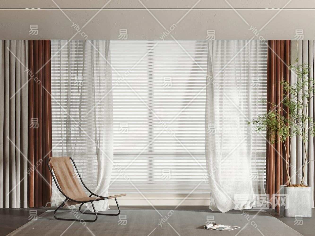 现代窗帘3D模型下载