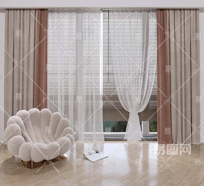 现代布艺窗帘3D模型下载