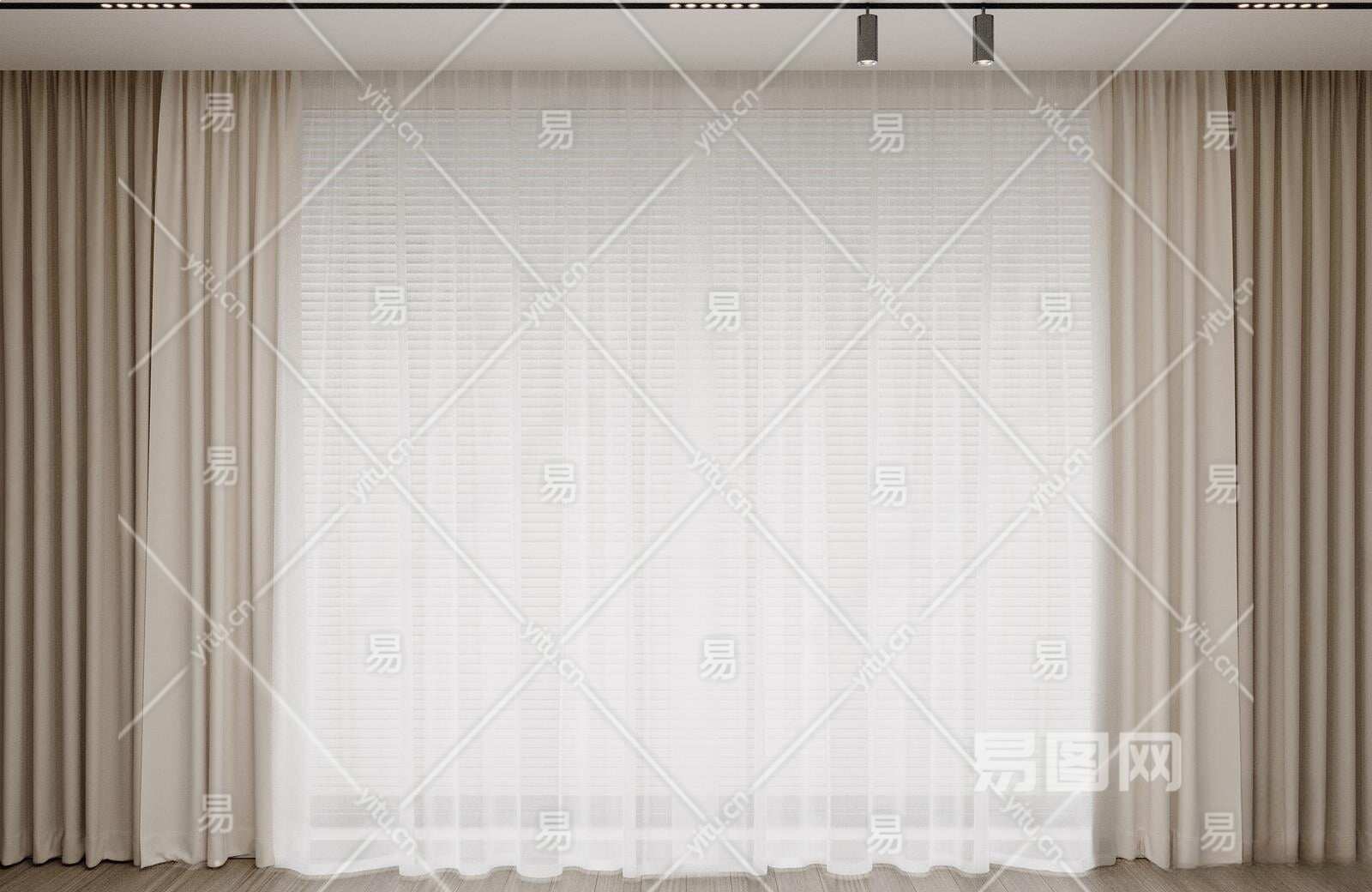 现代窗帘3D模型下载