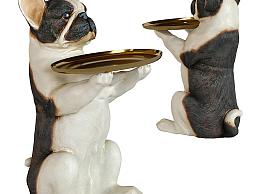 现代动物雕塑摆件 陈设品 艺术装置 艺术品摆件 小狗托盘雕塑