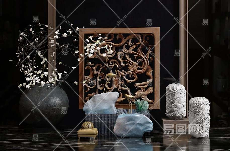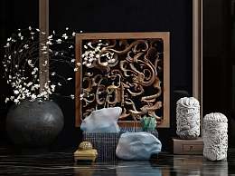 和唐品牌新中式石雕3D模型下载