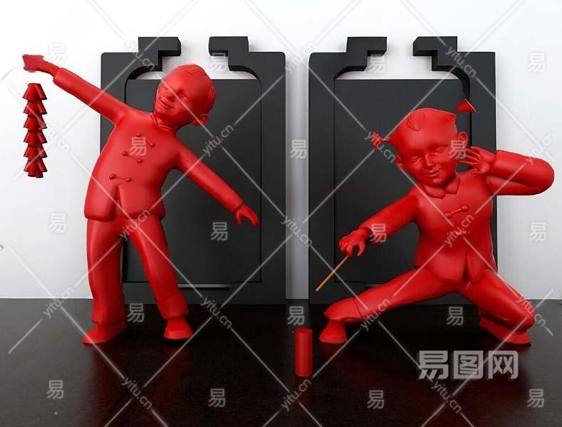 现代春节福娃雕塑3D模型下载