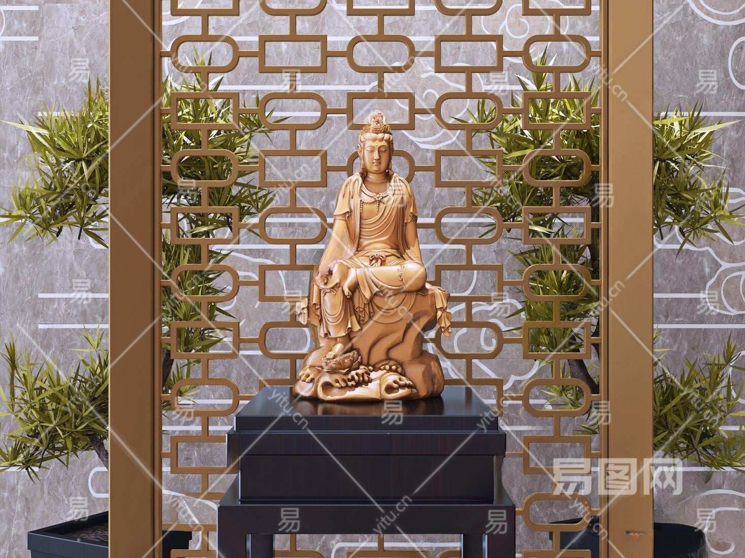 新中式雕塑3D模型下载