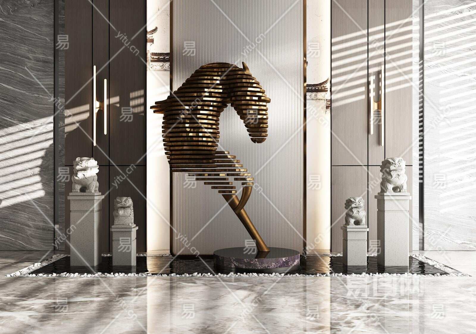 现代铜马雕塑3D模型下载